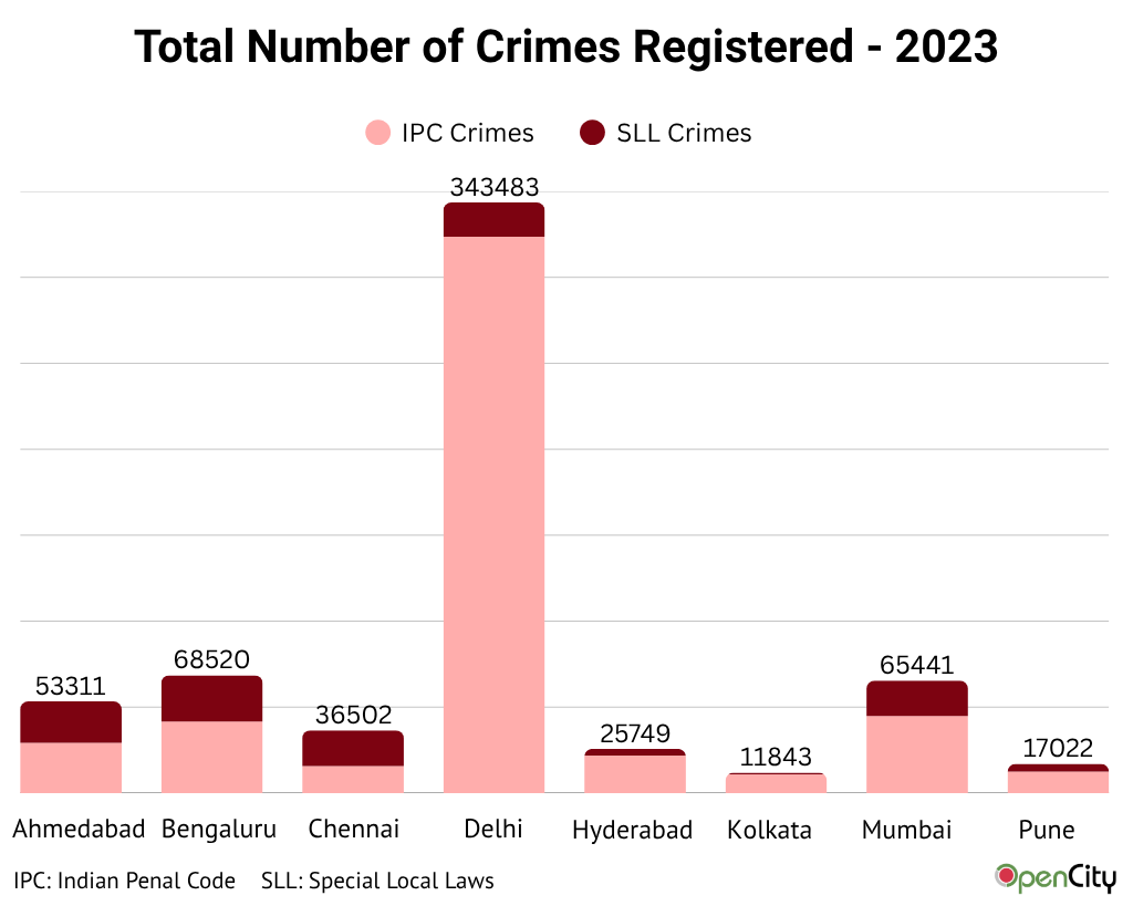 While IPC cases dominate in most Indian cities, the exceptions are Chennai – where more than half the cases are under SLLs, – Ahmedabad, Bengaluru and Mumbai where a large share of criminal cases were filed under SLLs.