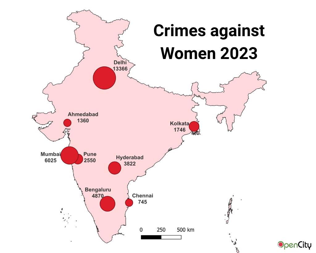Kolkata registered the fewest cases, under 300 during 2023. Extremely low numbers when compared to other cities could suggest that fewer people are coming forward to register cases, or are being dissuaded from registering cases.