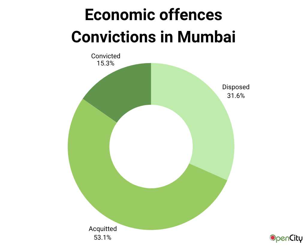 In Mumbai, the conviction rates were poor, at 15.3%. Concerningly, 31.6% of the cases were disposed before trial, with more than 50% of the accused being acquitted. The data suggests that compared to crimes against people, economic offences are harder to investigate and prosecute as financial transactions move increasingly to the digital realm.