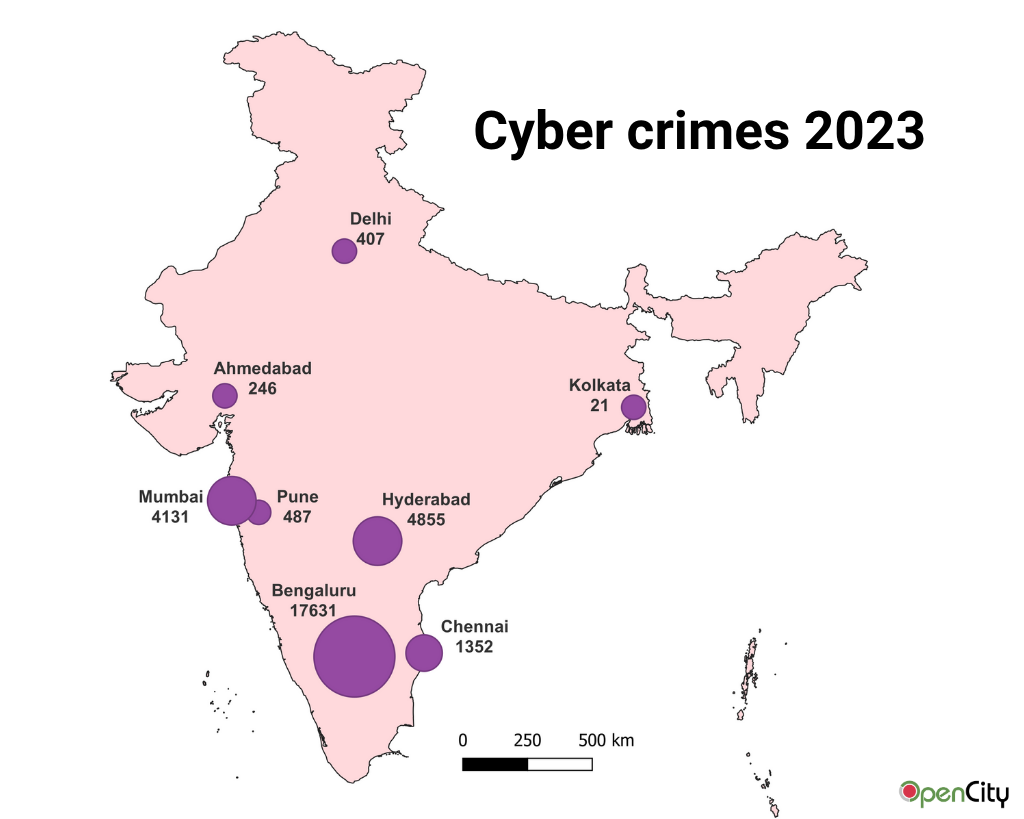 Compared to other crimes, in cyber crimes there is a huge gulf between Bengaluru and the rest of the cities. Hyderabad and Mumbai together account for just around half of Bengaluru’s cases. One main reason for this variance could be the awareness among people about such crimes, and their coming forward to register them in some cities.