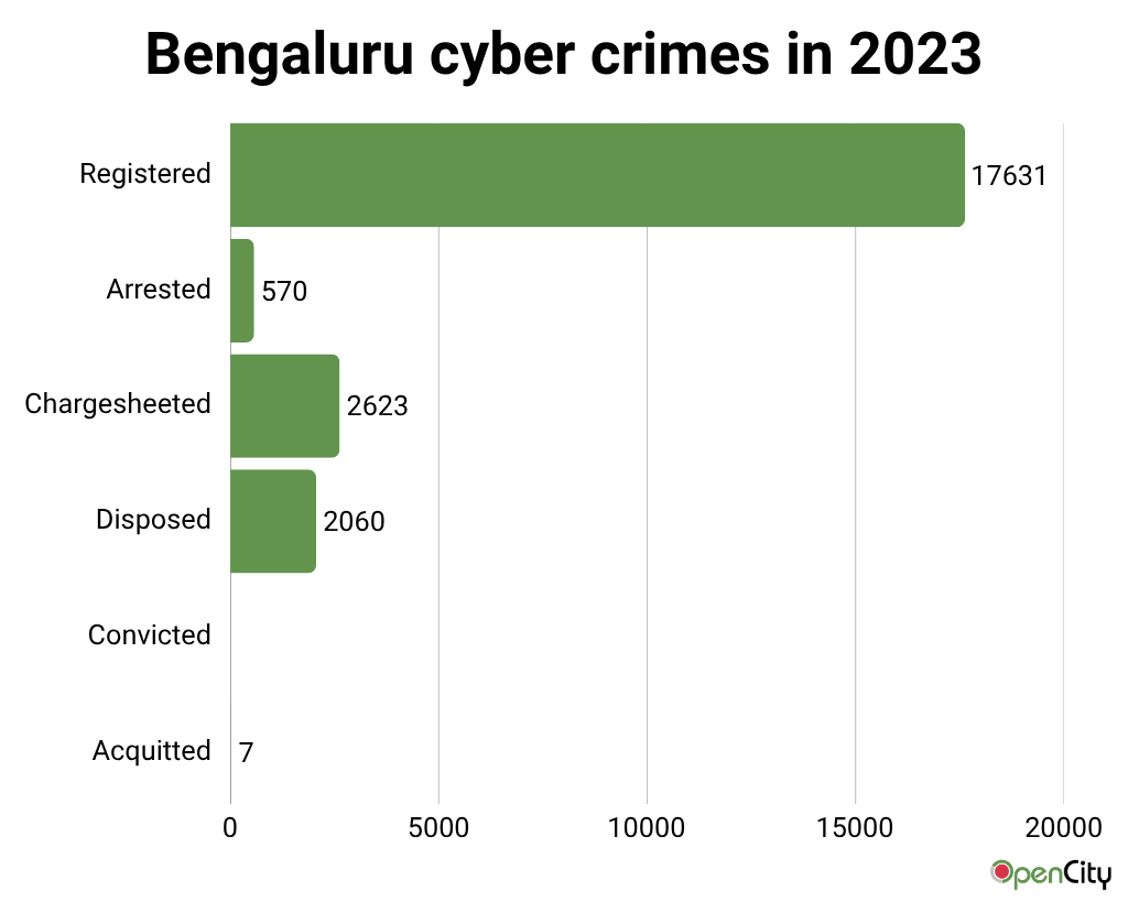 While more than 17000 cases registered in 2023, only 2000 cases moved to trial in Bengaluru. Almost all of these cases were disposed of before trial with the remaining resulting in acquittal.