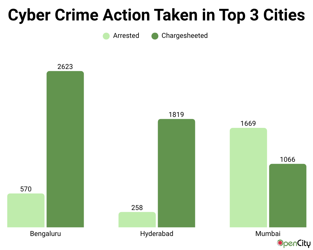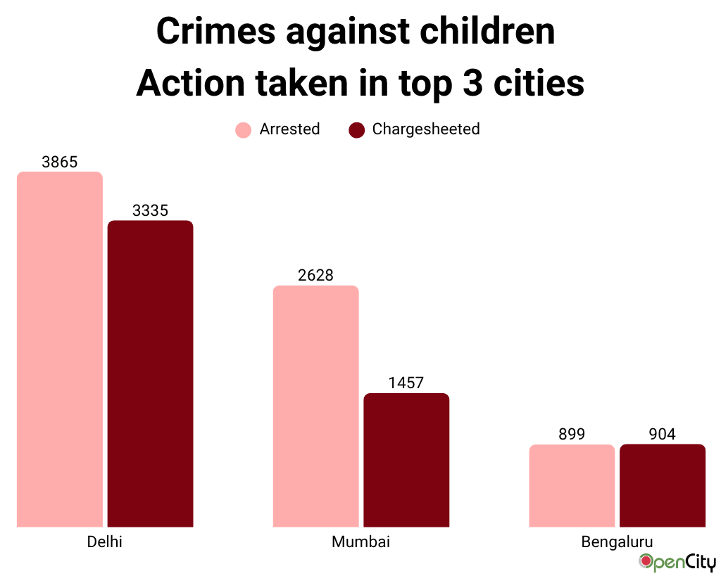 In terms of arrests and chargesheets, the numbers fall well behind the number of cases in both Delhi and Bengaluru. This is especially concerning given the nature of the crimes and the corresponding numbers for crimes against women.