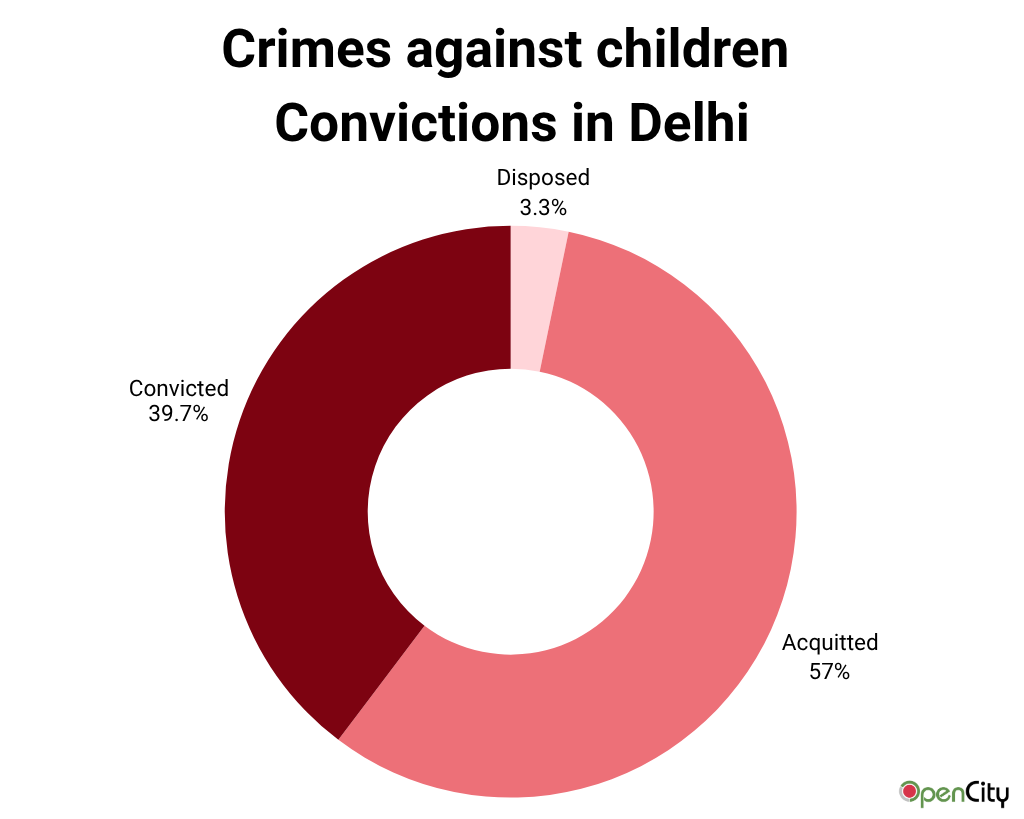 However, in trials completed in 2023 in Delhi, close to 40% of those charged with crimes against children were convicted, a much higher percentage than for crimes against women.